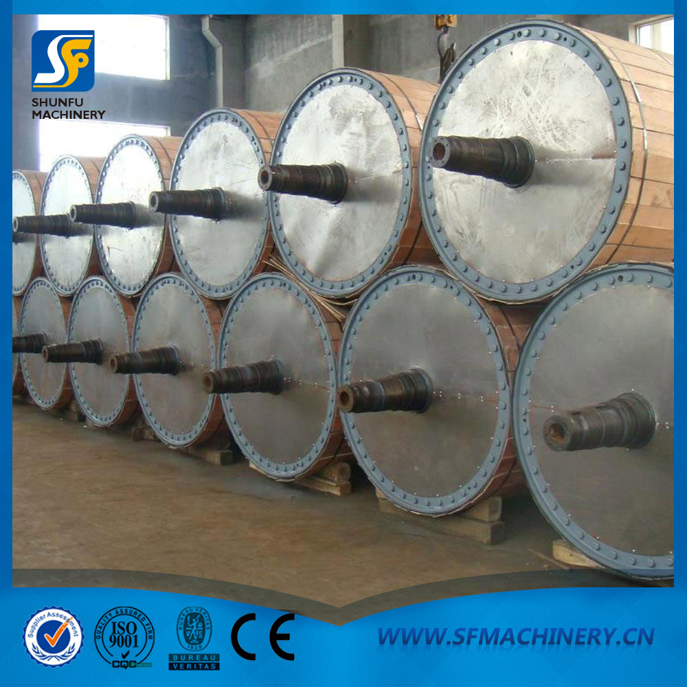 烘缸是用铸铁制成的两端有盖的空心圆筒,由缸体及其两端的缸盖组成,外径多为1000~3000mm,在运转过程中,内通蒸汽将输送的纸张烘干烫光。